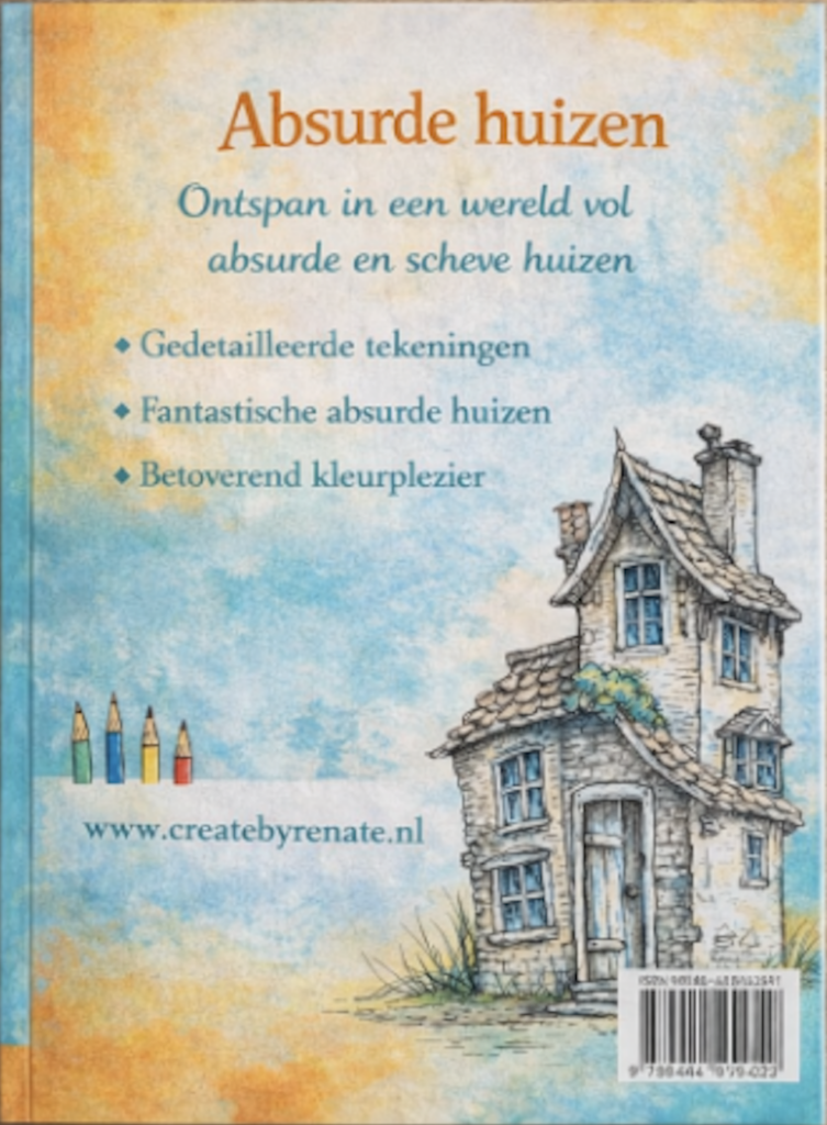 Ik ben trots om mijn eerste kleurboek te presenteren: Absurd Mooie Huizen — een fantasierijke reis langs gebouwen die alle regels van architectuur tarten. Dit unieke kleurboek zit vol creatieve, surrealistische en bizarre huizen die wachten op jouw kleur, stijl en verbeelding.